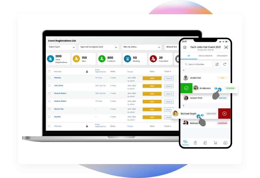 Enjoy real time user data synching on all devices and easily track your attendee list on your preferred device.